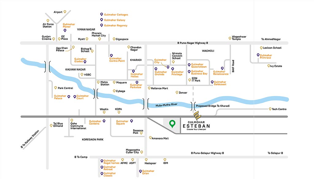 - Located close to Y junction connecting to Koregaon Park, Mundhwa, Hadapsar and Kharadi